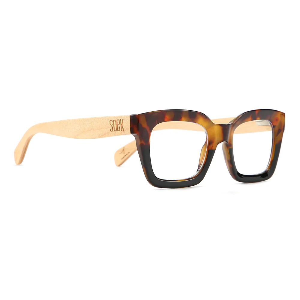 These popular 90s inspired readers are a mid-sized style that will suit most face shapes and sizes. Our Zahra magnifying readers are finished in a gorgeous toffee tort and fitted with white maple wood arms.
